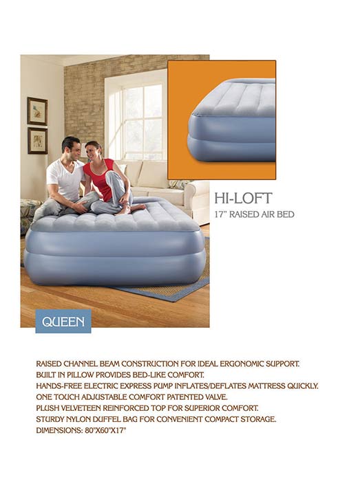 The included electric air pump makes setting up easy. Reverse the pump when your guest leaves then fold it up and put away.