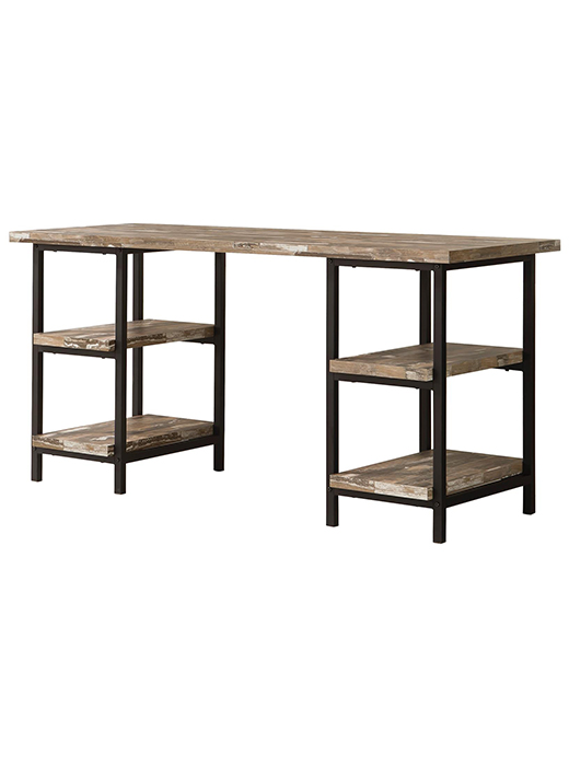 Desk – Metal Frame and Distressed Finish with Shelves