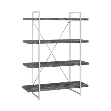 Grimma 4-Shelf Bookcase Rustic Grey Herringbone