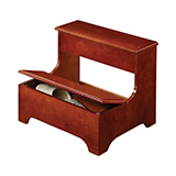 Think of this step stool as an ottoman with a makeover. It is two-tiered for convenience and practicality. Top shelf is ideal for sitting or holding a vase of fragrant flowers. Lower shelf is perfect for a napping cat or a draping fern. Lower shelf also opens to a small storage compartment for additional function.