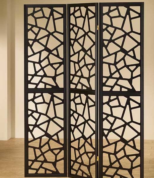 Uniquely designed 3 panel folding screen featuring intricate mosaic cuts on each panel.