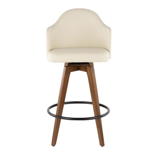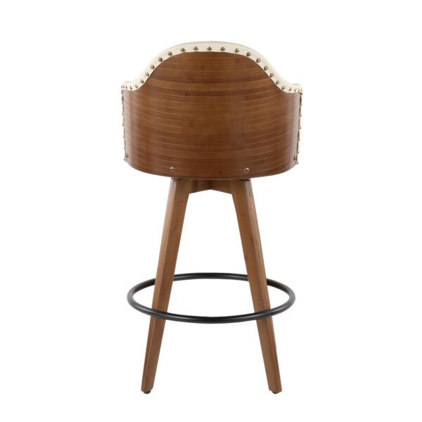 The Mid-Century charm of the Ahoy Counter Stool combines sturdy construction with aesthetic appeal. A walnut wood pressed grain bamboo frame is accented by faux leather upholstery and stylish wood legs. Available in a variety of color combinations.