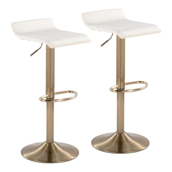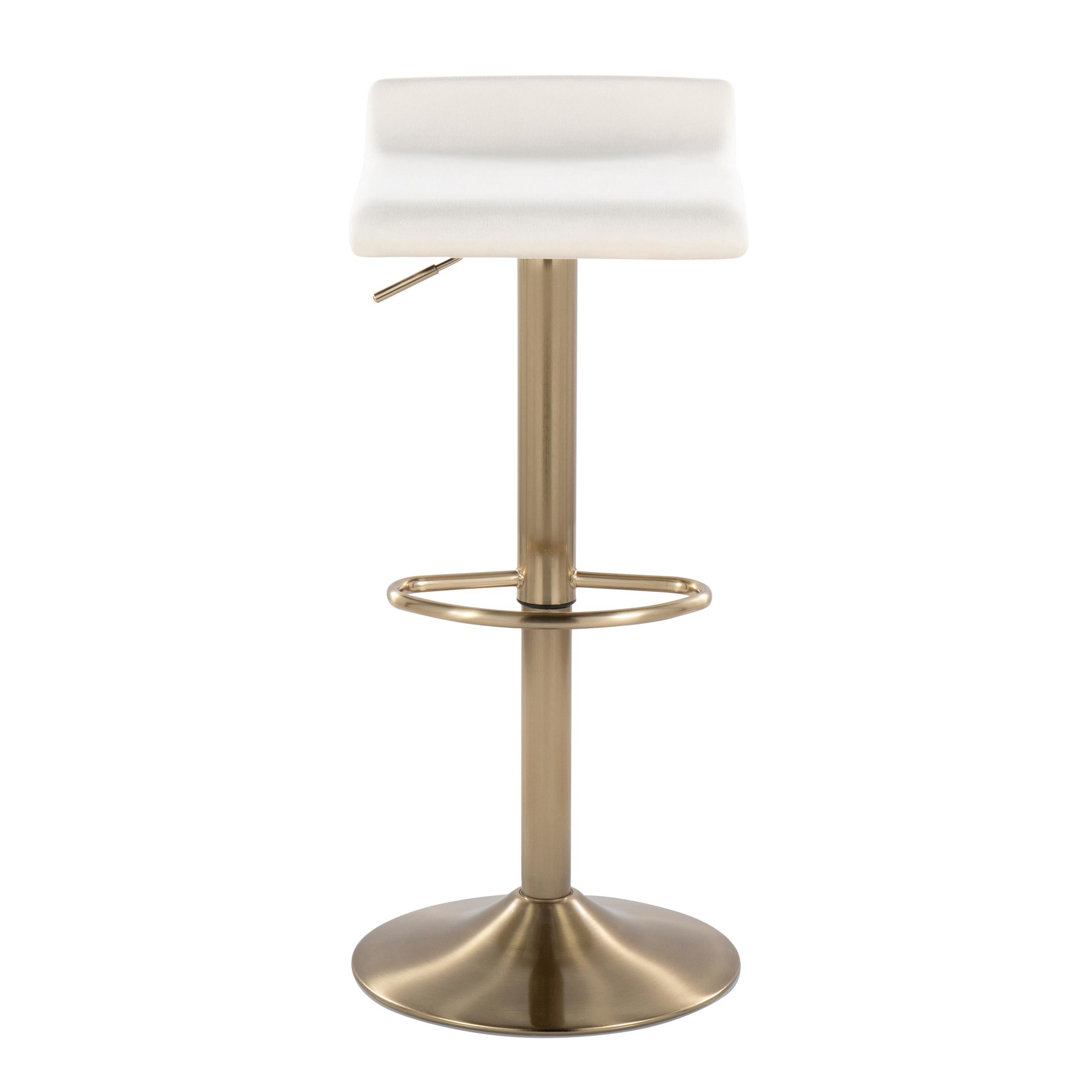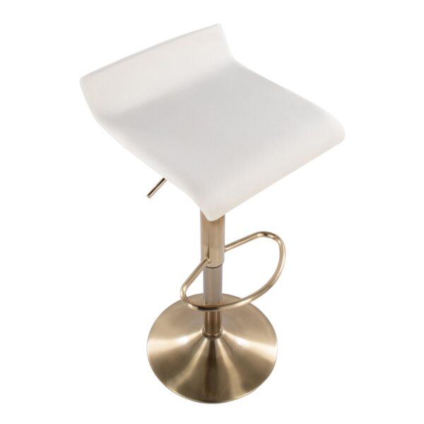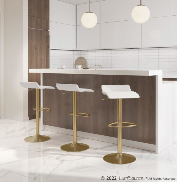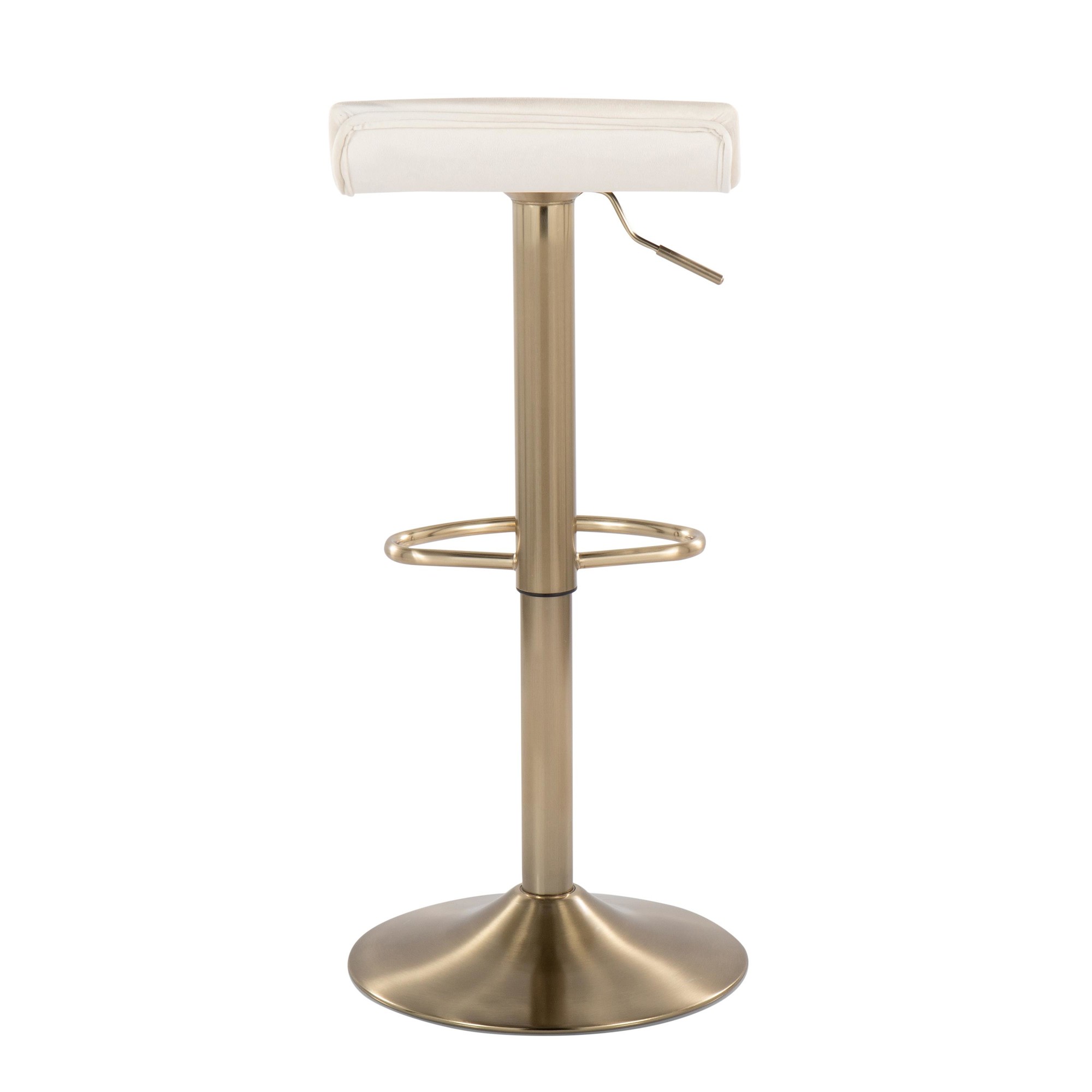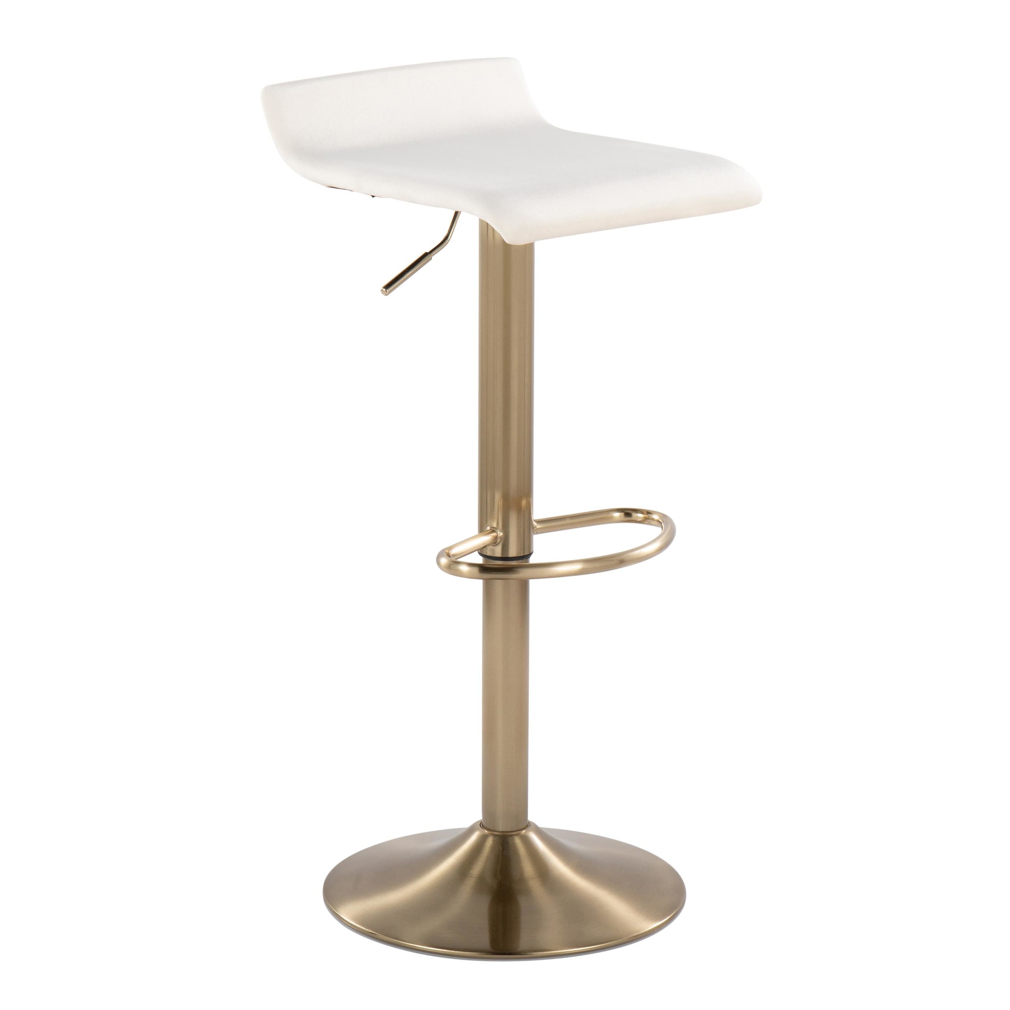 A gentle wave in the upholstered velvet seat of the Ale Adjustable Height Barstool by LumiSource creates a welcoming allure. Featuring an adjustable brushed gold metal base and a built-in footrest, this stool allows you to position the seat height from counter to bar height. With the Ale Adjustable Barstool, you get a simple yet sophisticated style at a great value!
