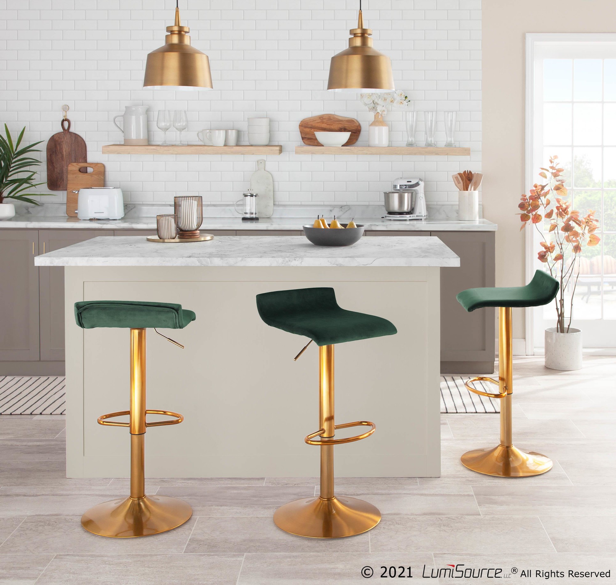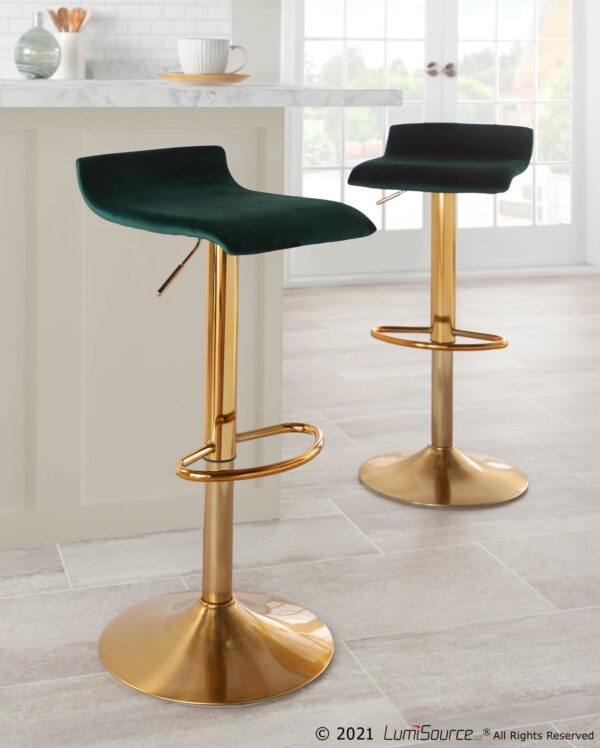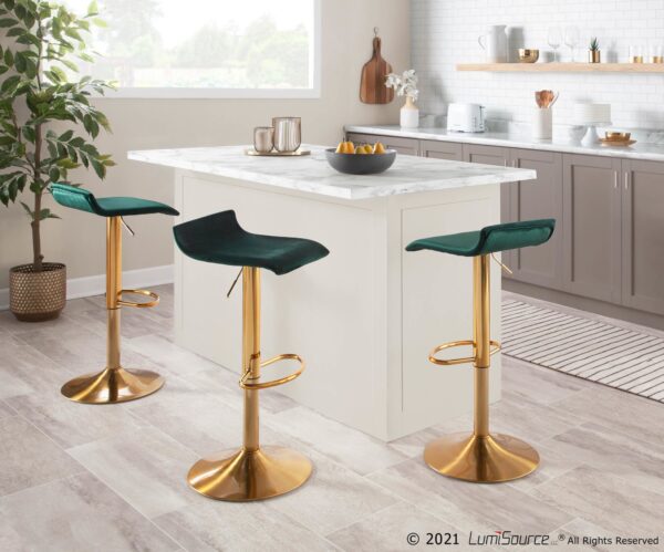 A gentle wave in the upholstered faux leather seat of the Ale Bar Stool creates a welcoming allure. Featuring an adjustable antique metal base with built-in footrest, this stool allows you to position the seat height anywhere from 21″ to 30″. Available in various colors and finishes.