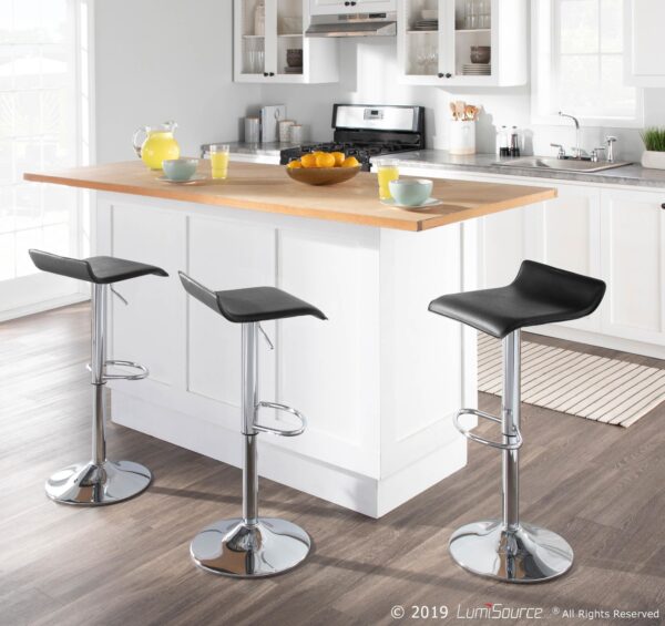 A gentle wave in the upholstered leatherette seat of the Ale Bar Stool creates a welcoming allure. Featuring an adjustable polished chrome pole, base, and footrest, this stool allows you to position the seat height anywhere from 21″ to 30″. With the Ale Bar Stool you get simple yet sophisticated style at a great value!