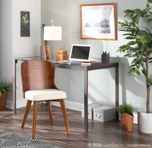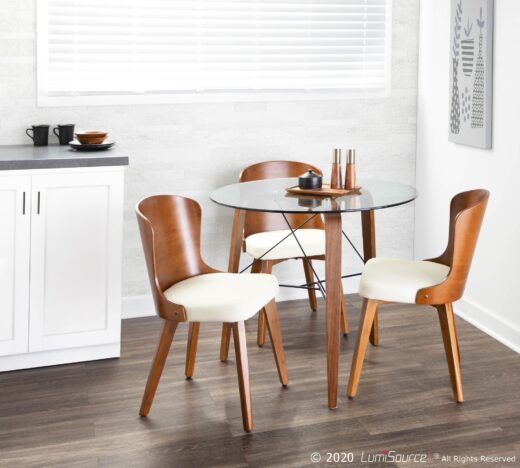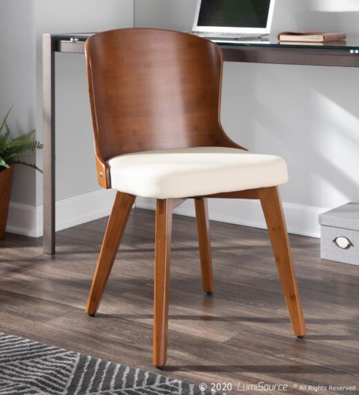 Crafted from walnut bentwood and accented with a faux leather seat, the Bocello Chair by LumiSource will bring mid-century charm to your home. The perfect chair to use in a dining area, living room or entryway, the Bocello Chair is available in a variety of colors, choose the one that fits your space the best.