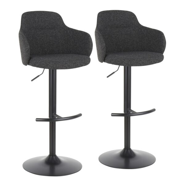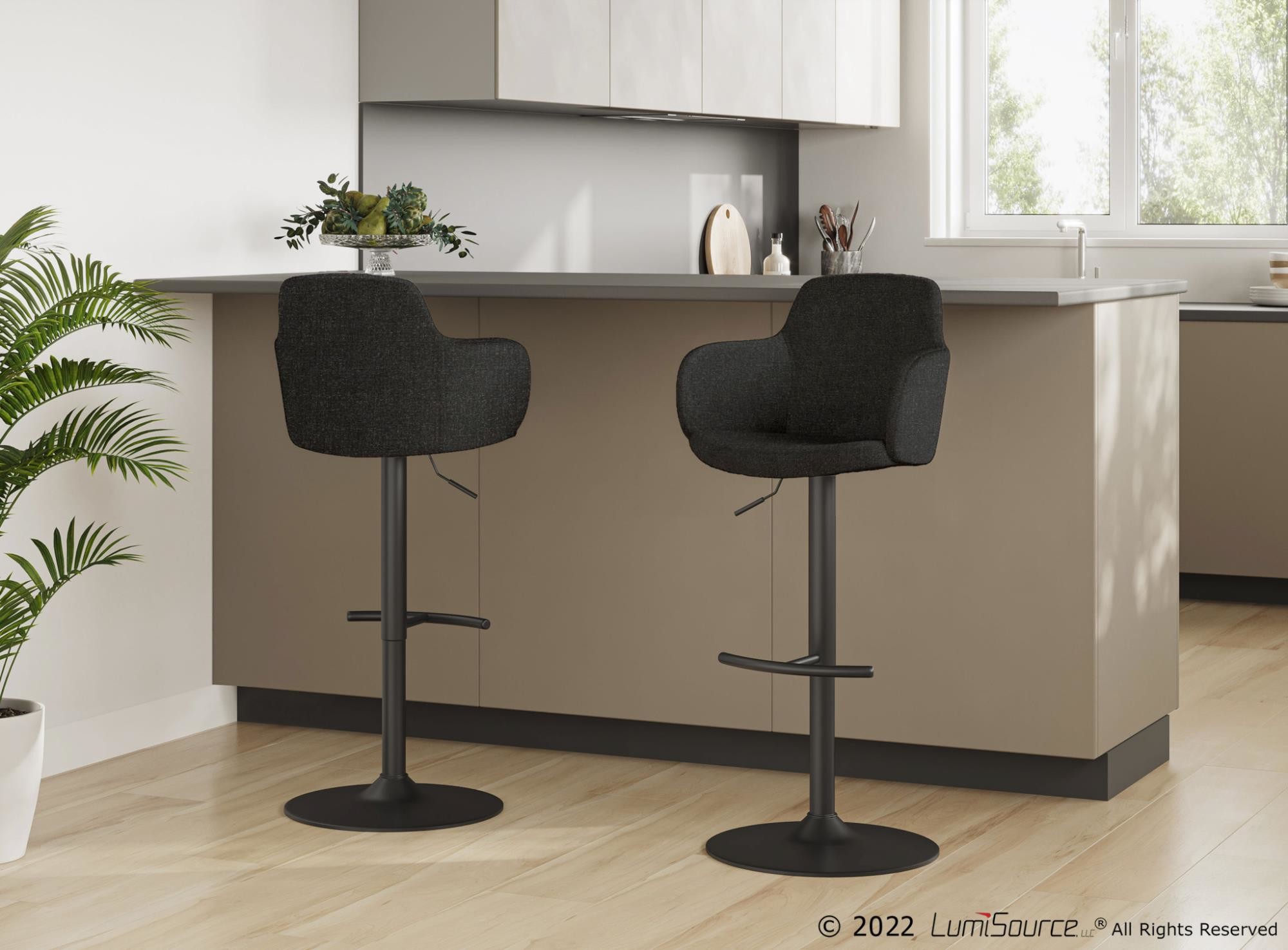 The industrial charm of the Boyne Barstool by LumiSource combines comfort with stylish appeal. An upholstered bucket style seat is accented by a black metal pedestal base. The height adjustability and swivel seat add to functionality and comfort of this stool. Available in a variety of colors, the Boyne Barstool can be used in the kitchen, dining room, bar or breakroom.