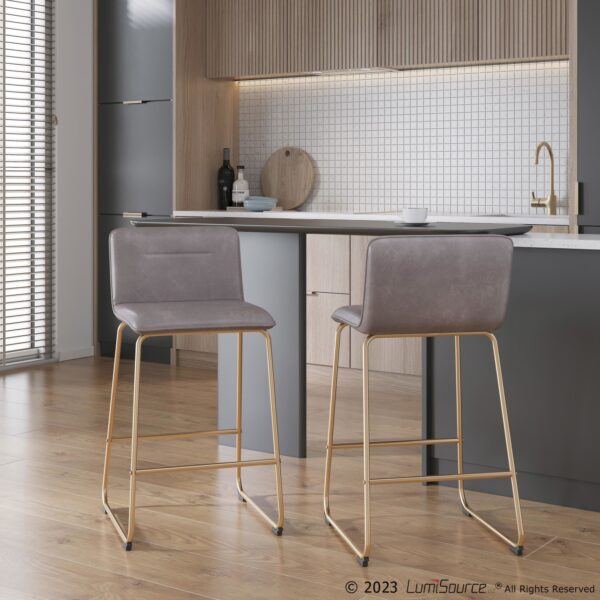 The Casper Fixed-Height Counter Stool by LumiSource brings comfortable seating in a stylish and slim design to your home. The Casper features a padded upholstered seat and backrest supported by sleek metal sleigh legs. Available in a variety of metal frame options and upholstery colors.