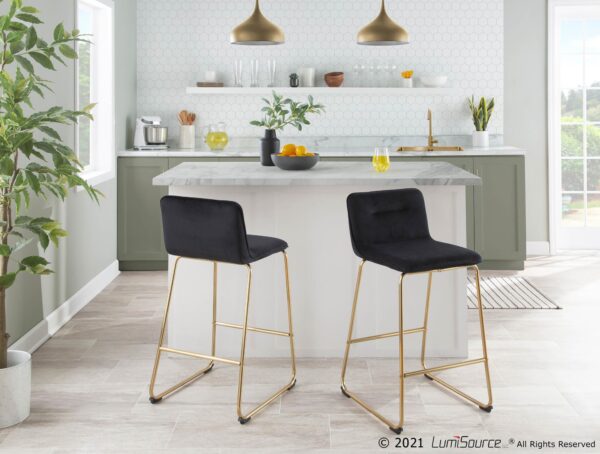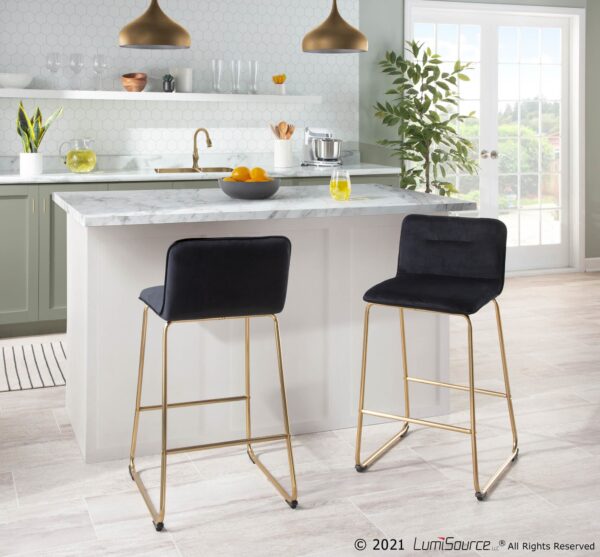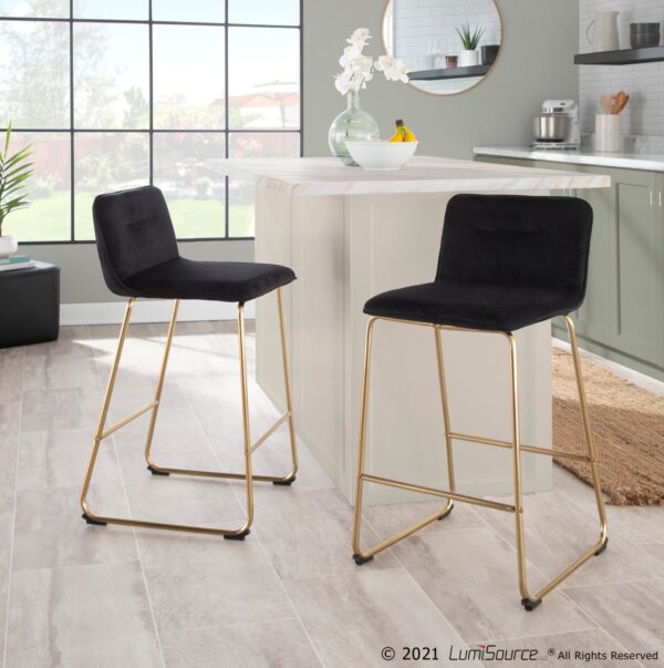 The Casper Fixed-Height Counter Stool by LumiSource brings comfortable seating in a stylish and slim design to your home. The Casper features a padded upholstered seat and backrest supported by sleek metal sleigh legs. Available in a variety of metal frame options and upholstery colors.