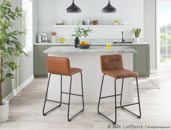 The Casper Fixed-Height Counter Stool by LumiSource brings comfortable seating in a stylish and slim design to your home. The Casper features a padded upholstered seat and backrest supported by sleek metal sleigh legs. Available in a variety of metal frame options and upholstery colors.