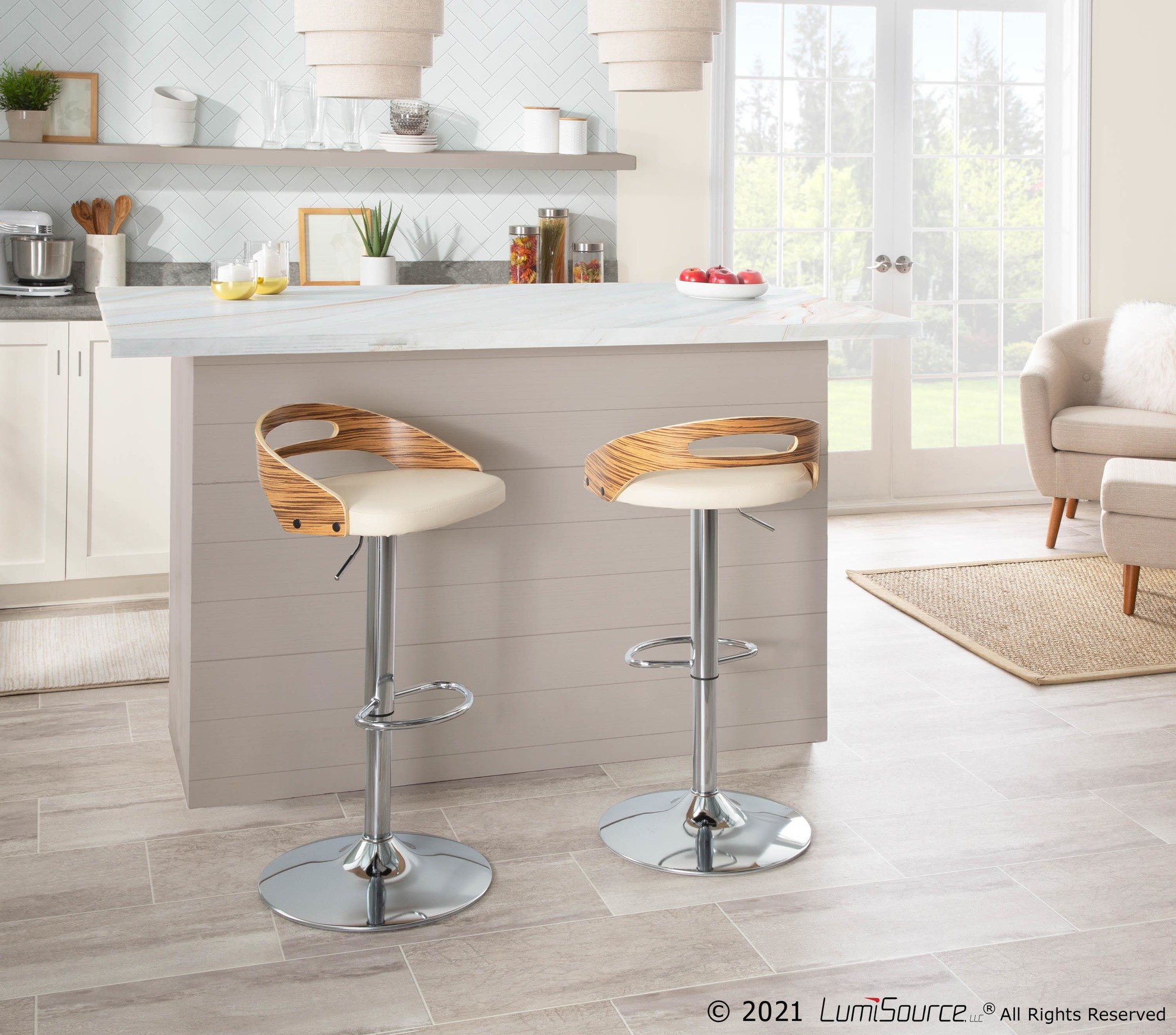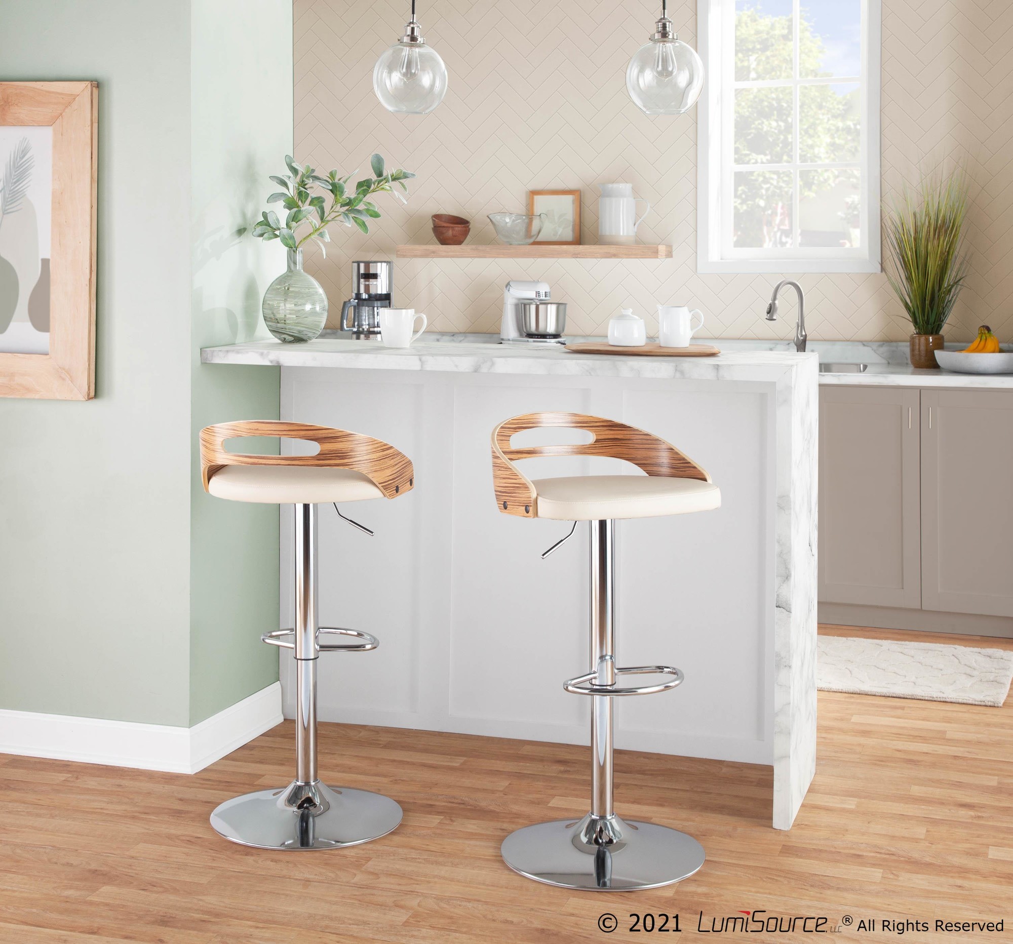 Finished in Chrome, Zebra Wood, Cream PU