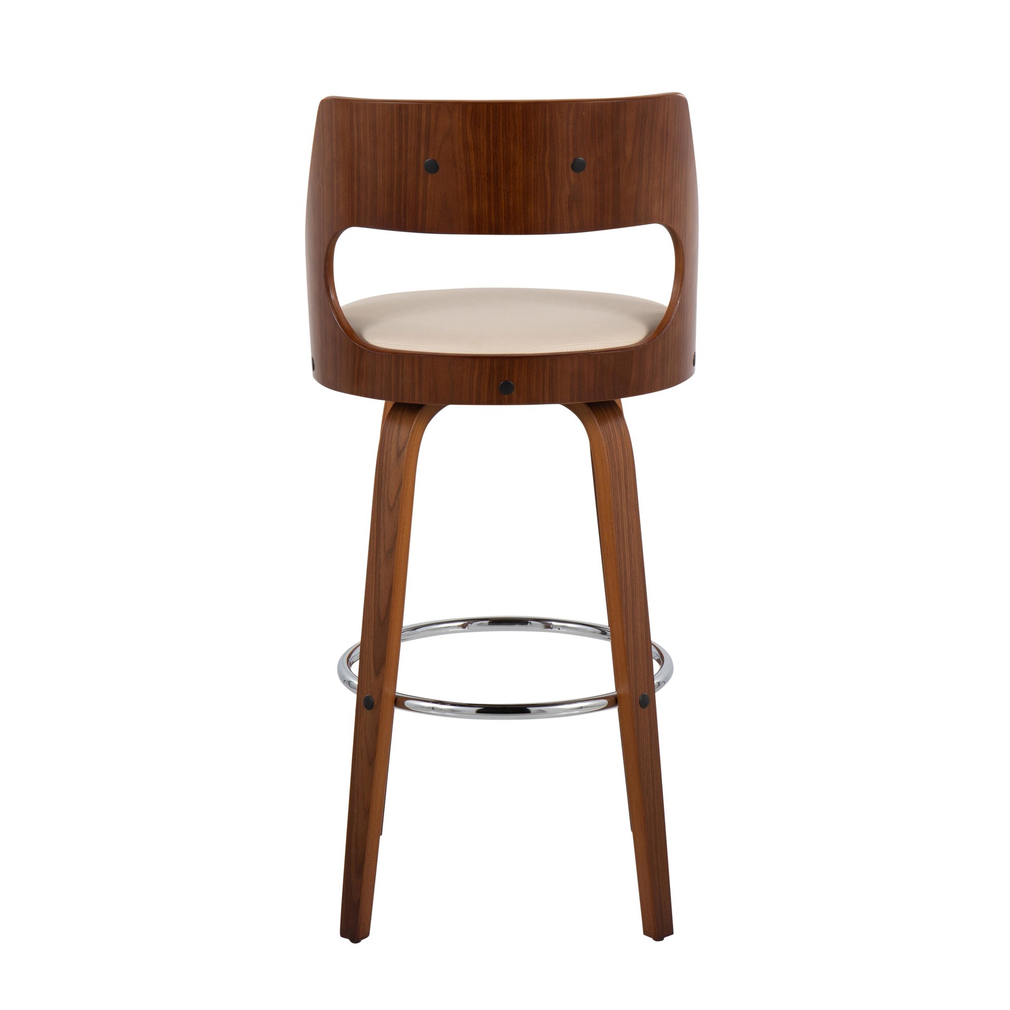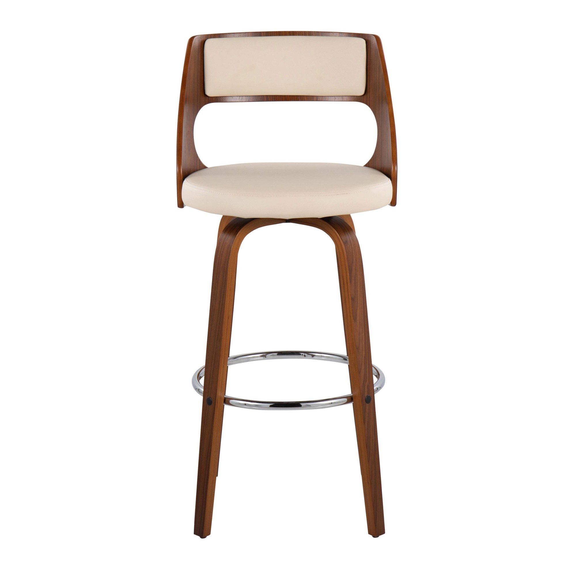 Step into the future of kitchen design with the modern appeal of the Cecina Barstool by LumiSource. A curved wood frame, chrome footrest, and swivel seat is juxtaposed by a traditional high cushioned backrest and seat.