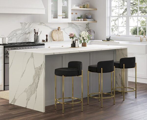 Add a dash of glam to your dining space with the Chloe Counter Stool by LumiSource. With a rich velvet upholstered seat and backrest, stylish tufting, and plush padding, the Chloe is accented by a luminous gold metal base. Available in a variety of colors, choose the one that fits your glam area the best!