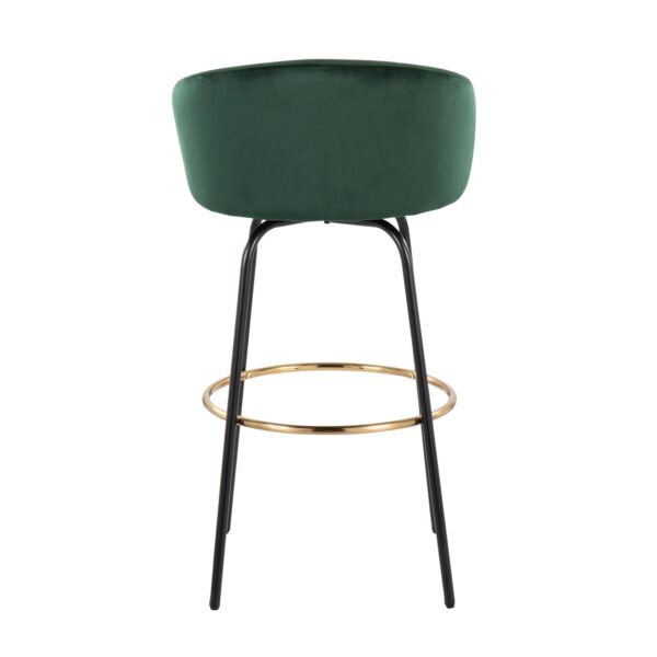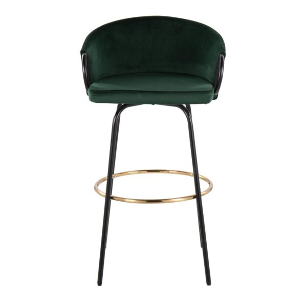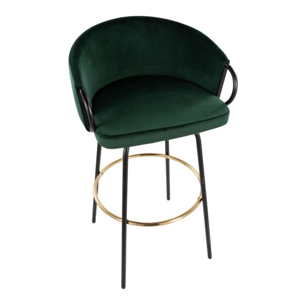 Chic modern style shines bright with the unique design of the Claire Bar Stool by LumiSource. With a rounded low backrest, sleek black armrests and a black metal frame, it’s the perfect piece for your contemporary bar area. The Claire Bar Stool has smooth swivel capability with lush velvet upholstery. Available in various bold colors.