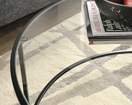 Create a great look with this round glass Coffee Table. Durable metal frame construction. Finished on all sides.