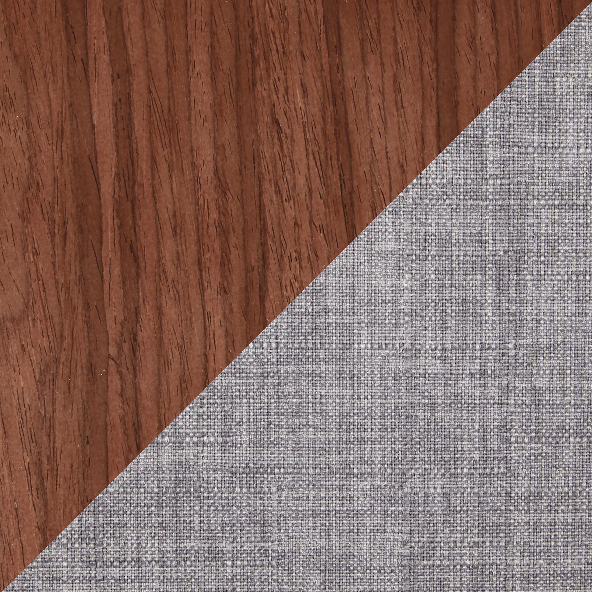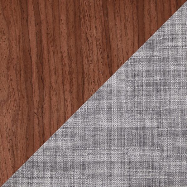 Finished in Walnut Wood, Light Grey Fabric, Black Metal
