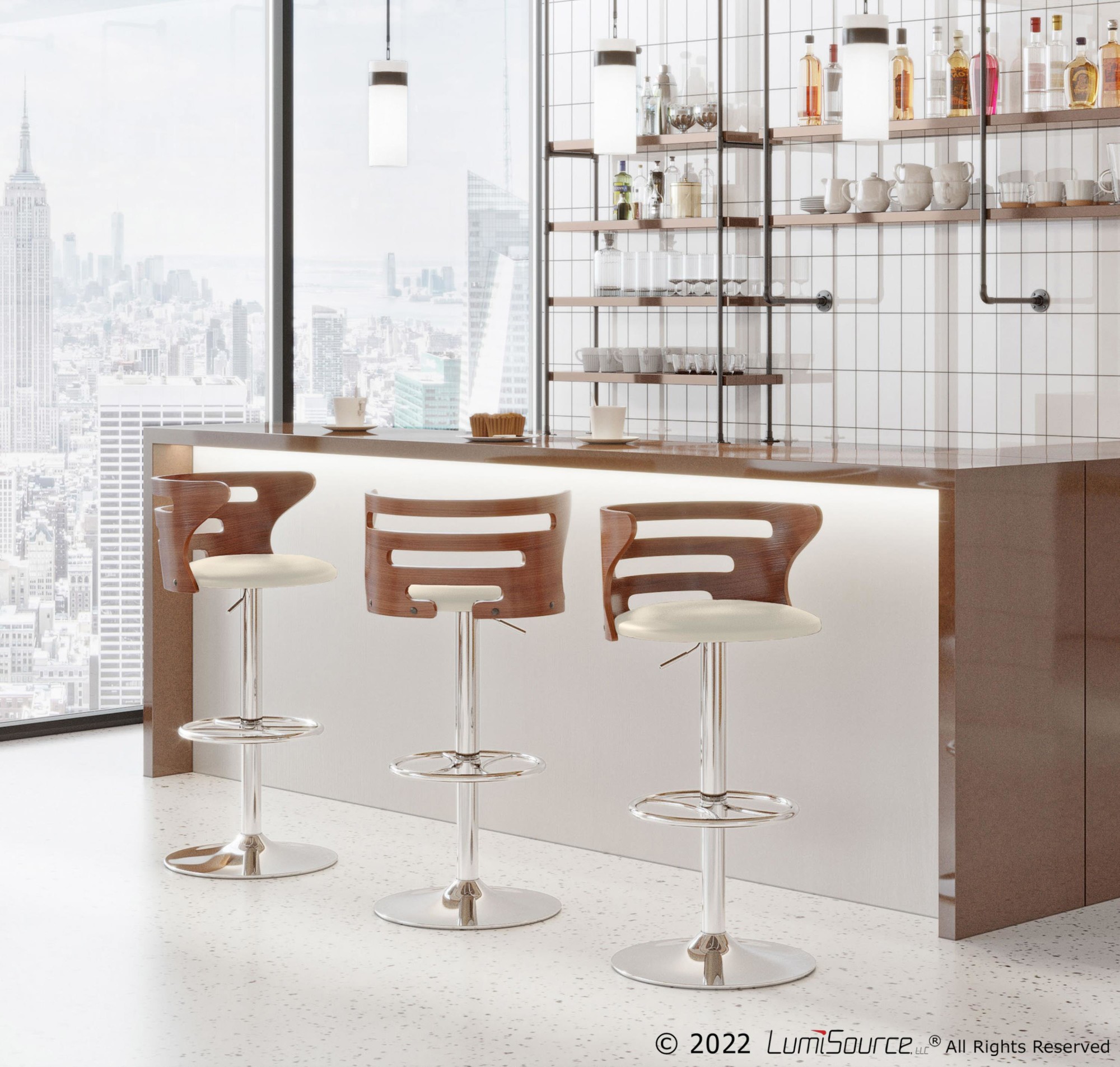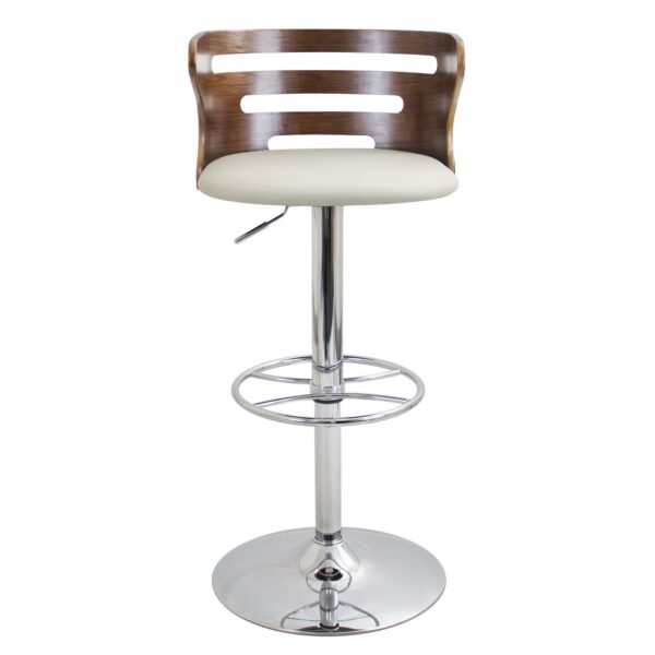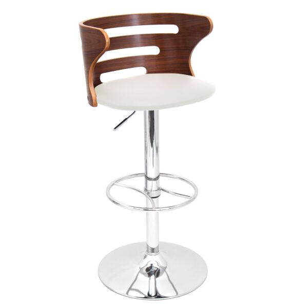 The Cosi Bar Stool by LumiSource is the definition of sophistication. With a beautiful slotted bent wood back, a padded leatherette seat and polished chrome base and footrest, this stool is both contemporary and comfortable. A hydraulic lift lets you adjust the seat height for ease and convenience.