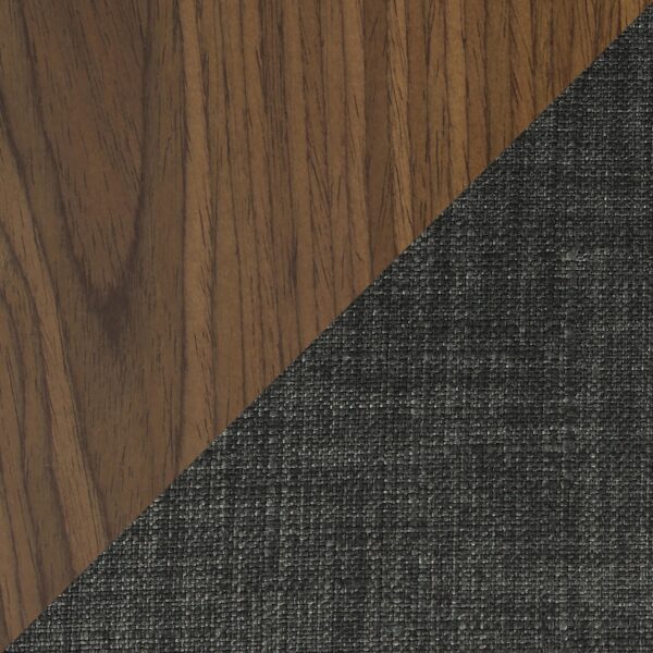 Finished in Walnut Wood, Charcoal Fabric, Chrome