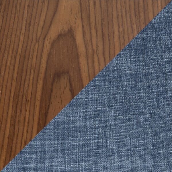 Finished in Walnut Wood, Blue Fabric, Chrome