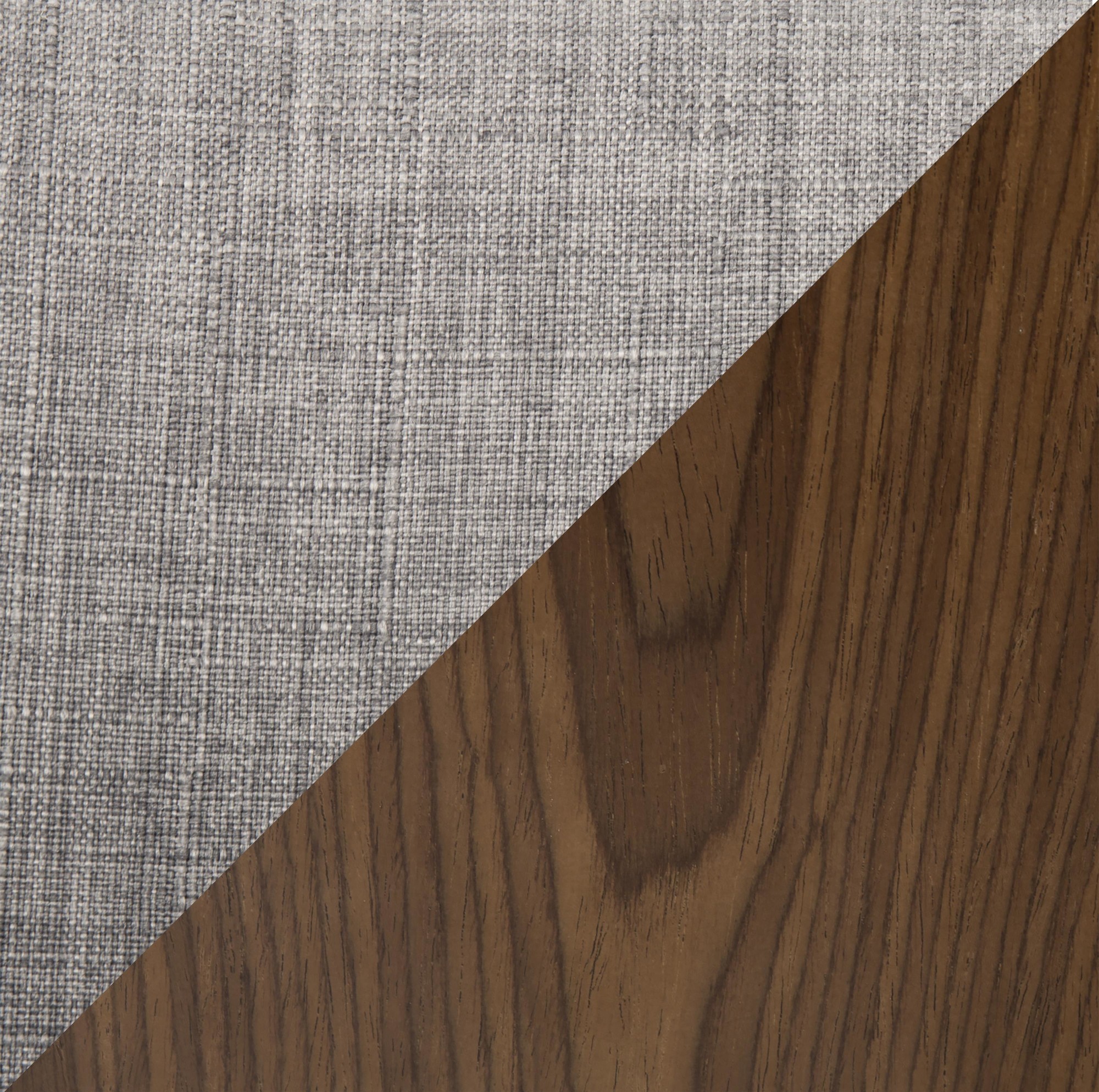 Finished in Walnut Wood, Light Grey Fabric, Chrome