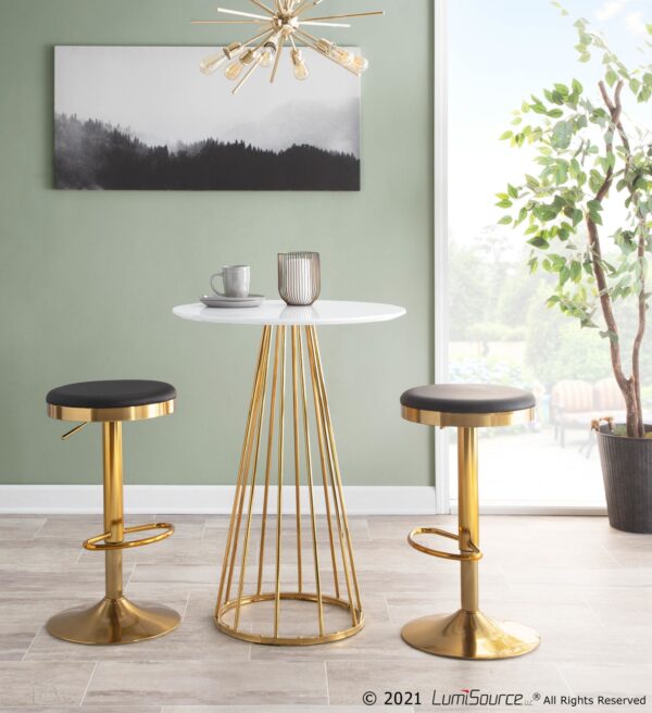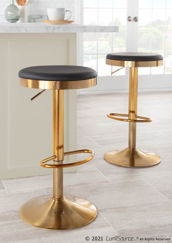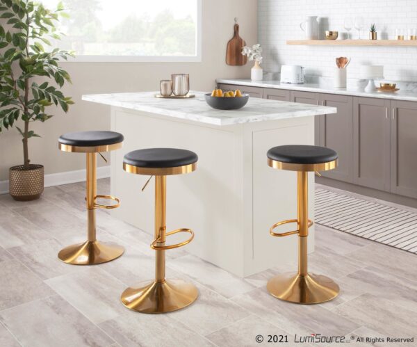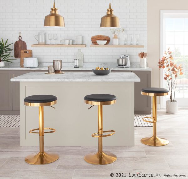 Add style to your kitchen or bar with the LumiSource Dakota Bar Stool. A perfect combination of glam and modern styling, this bar stool showcases an upholstered seat, built-in footrest, and 360-degree swivel. Available in a variety of finishes and seat options, choose the one that fits your space best!