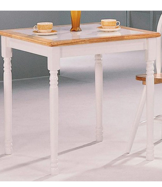 This charming dining table is perfect for the breakfast nook or casual dining spot in your home. The small square dining table has a white tiled top, with a smooth Natural wood frame. Pretty White turned legs rest below, creating a lovely two tone look that will add rustic character to your home. Pair with the matching chairs to create a cozy and comfortable spot to enjoy your coffee and newspaper each morning.
