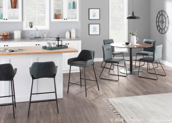 Add stylish and comfortable seating to your kitchen or counter area with the industrial charm of the Daniella Counter Stool by LumiSource. Featuring a sleek faux leather upholstery, padded seat, and backrest and a unique black metal frame. The Daniella is available in a variety of upholstery colors.