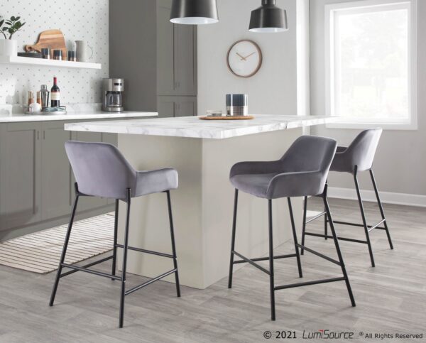 Add stylish and comfortable seating to your kitchen or counter area with the contemporary charm of the Daniella Counter Stool by LumiSource. Featuring a sleek upholstered padded seat, backrest, and a unique metal frame. The Daniella is available in a variety of upholstery colors.