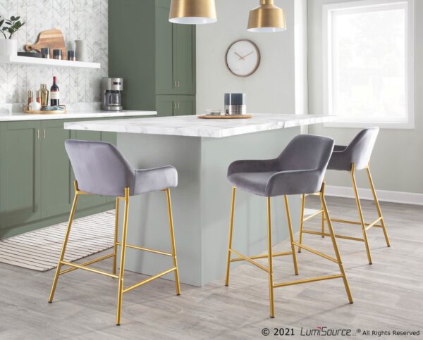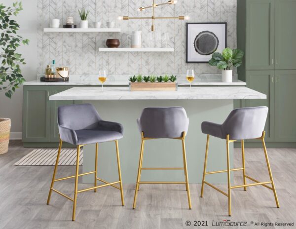 Add stylish and comfortable seating to your kitchen or counter area with the contemporary charm of the Daniella Counter Stool by LumiSource. Featuring a sleek upholstered padded seat, backrest, and a unique metal frame. The Daniella is available in a variety of upholstery colors.