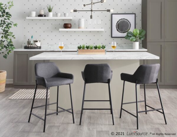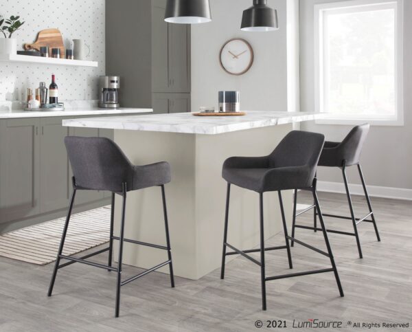 Add stylish and comfortable seating to your kitchen or counter area with the contemporary charm of the Daniella Counter Stool by LumiSource. Featuring a sleek upholstered padded seat, backrest, and a unique metal frame. The Daniella is available in a variety of upholstery colors.