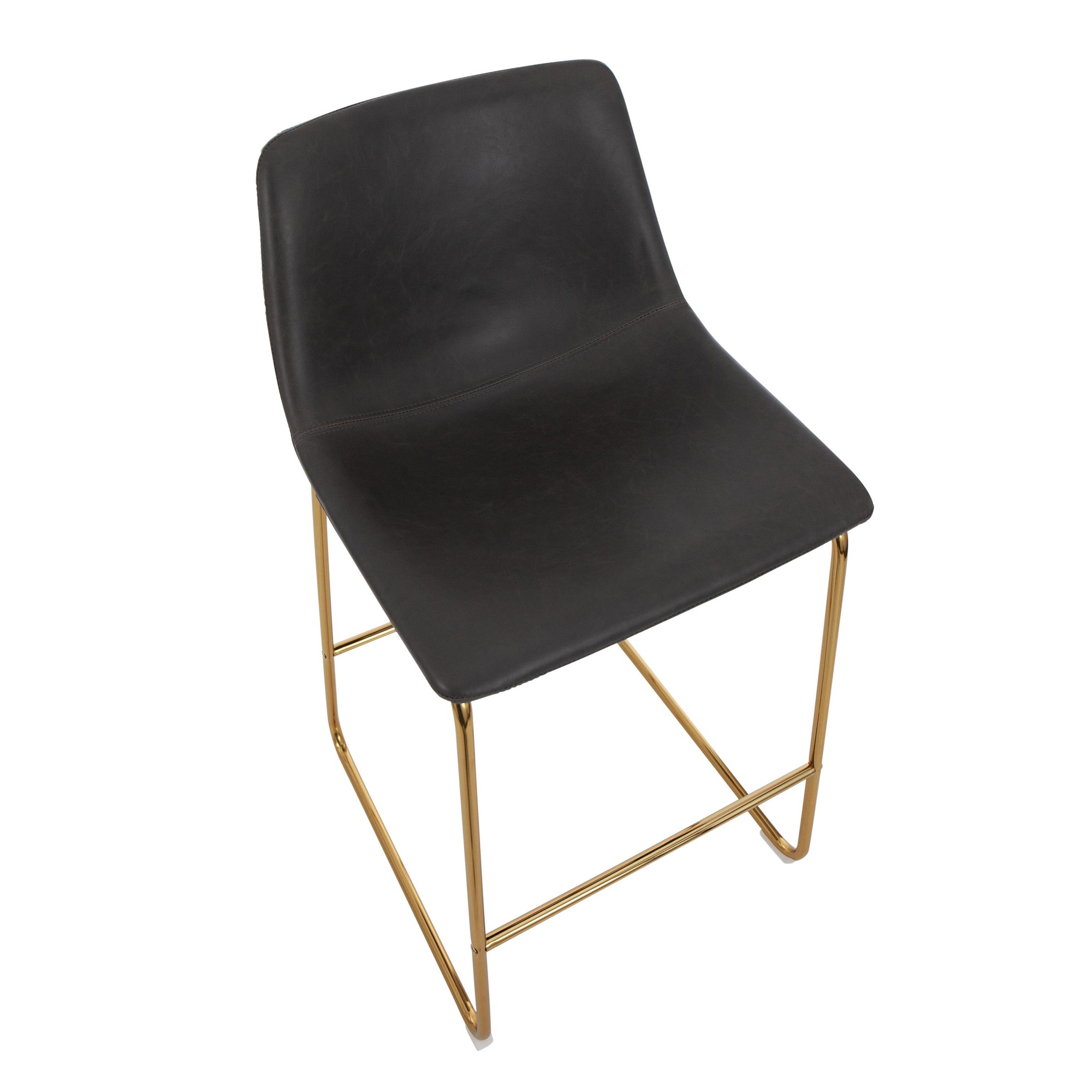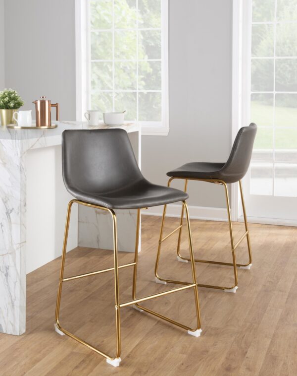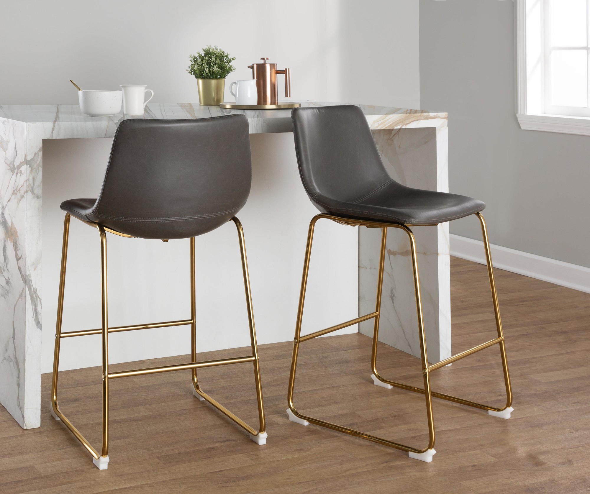 Sit in style with the contemporary design of the Duke Fixed-Height Counter Stool by LumiSource. An upholstered seat sits on a sturdy, fixed height gold metal frame. Sold in sets of two, the Duke Counter Stool looks great in any kitchen or dining room.