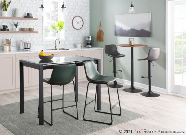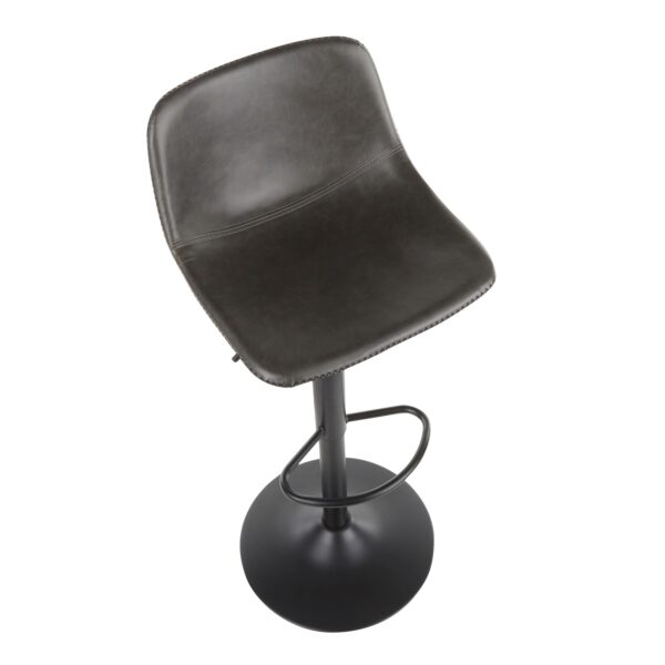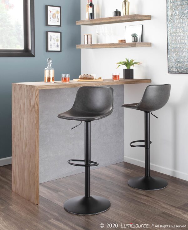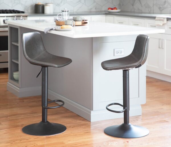 Sit in style with the industrial design of the Duke Barstool. With stylish faux leather upholstery, unique zig-zag stitching, and adjustable height, the Duke Barstool looks great in any kitchen, bar, or break room.