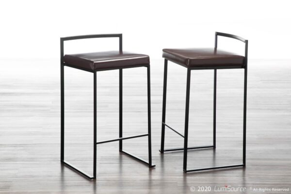 The simple elegance of the Fuji belies its astonishing comfort. Lightweight thin lines that create the simplistic frame and backrest support a thick padded seat cushion. A stackable design for easy storage makes this a great stool for entertaining. With its simple stylishness, the Fuji is sure to match any decor. Available in many color combinations, choose the look that best fits your dining space.