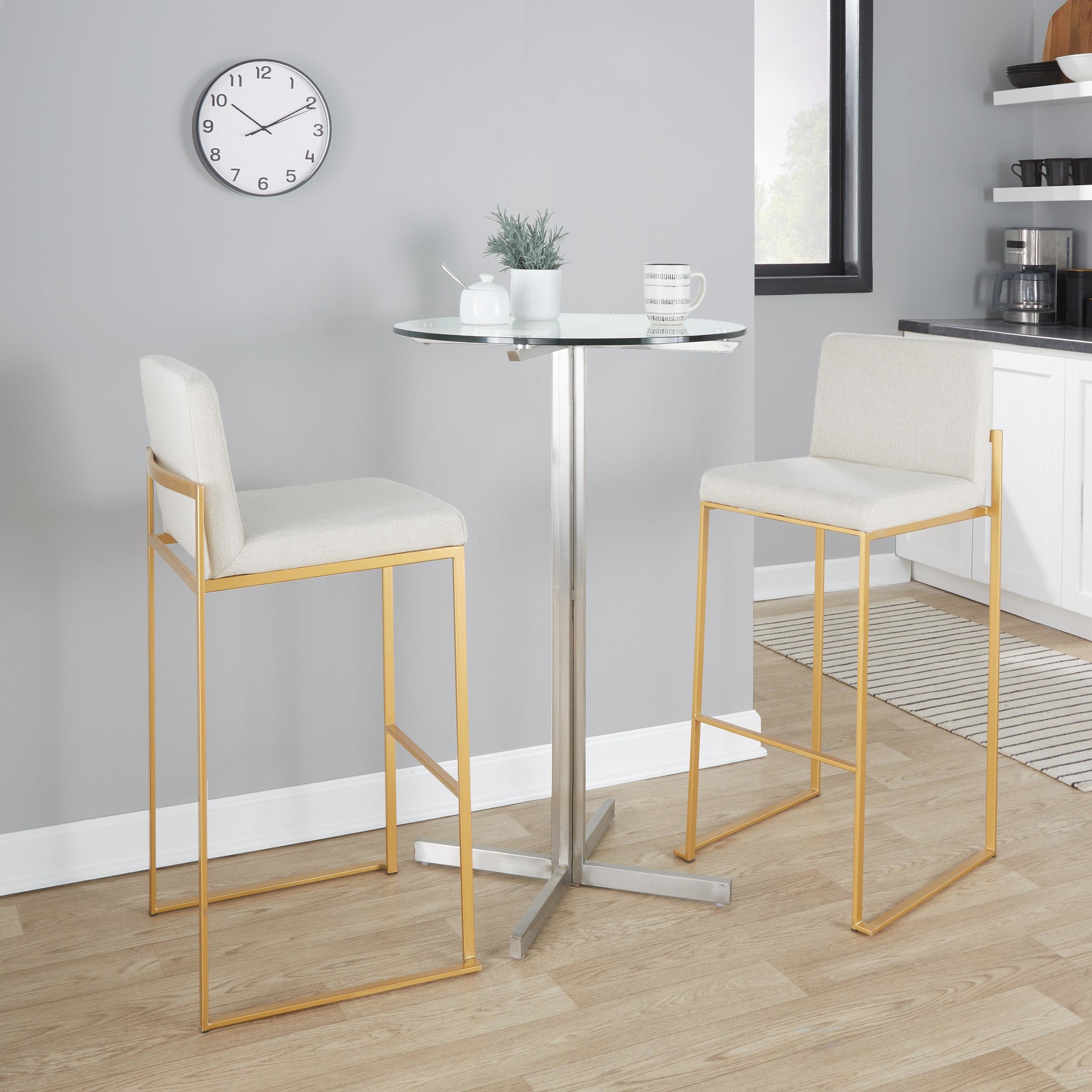 Modern elegance at its finest, the Fuji High Back Bar Stool by LumiSource features an extra-wide (and extra comfortable) upholstered seat, a high padded backrest, and a stylish metal frame. The perfect contemporary counter stool, the Fuji is available in a stainless steel, gold, or black metal frame and comes in a variety of sleek upholstery colors.