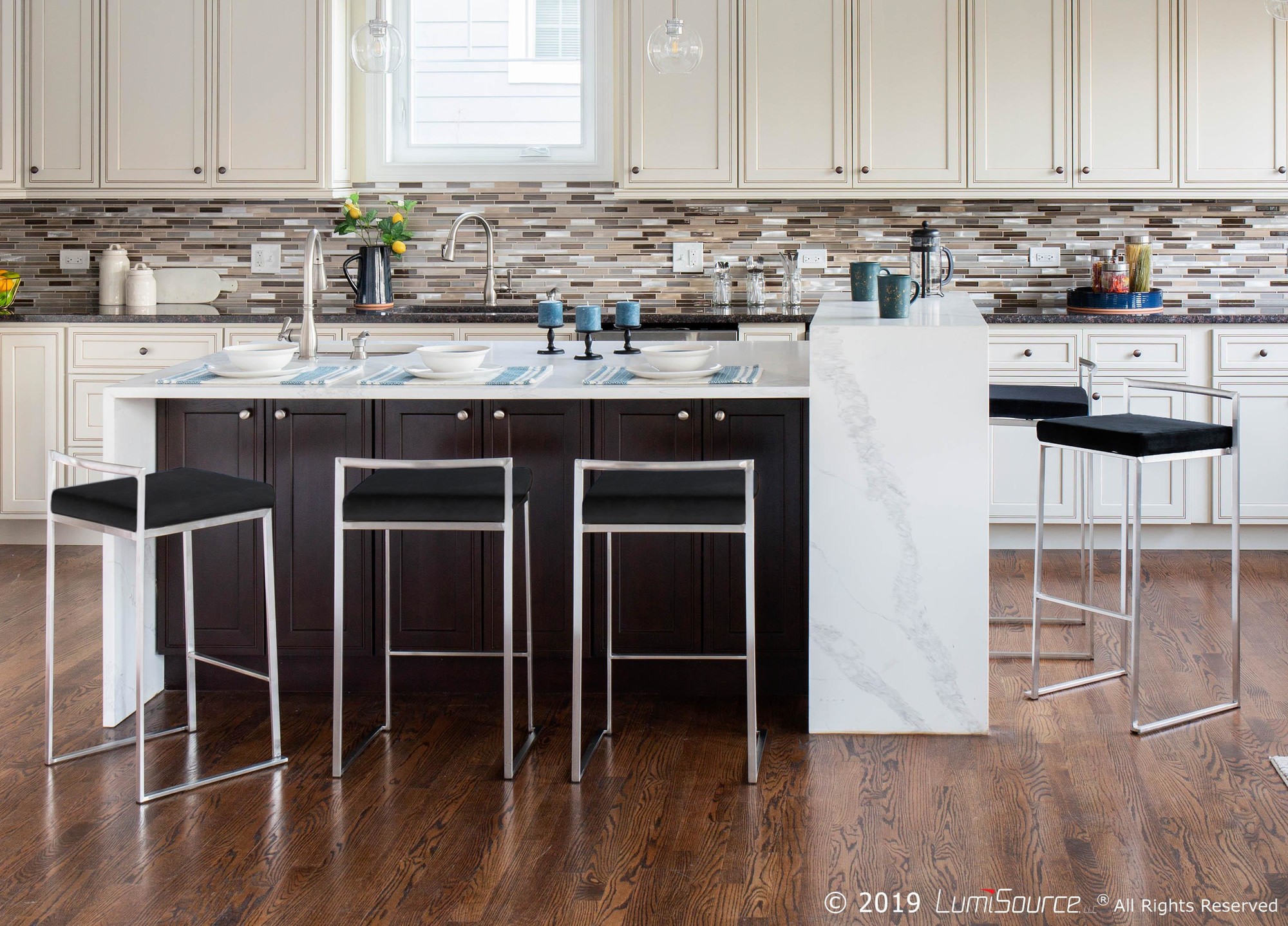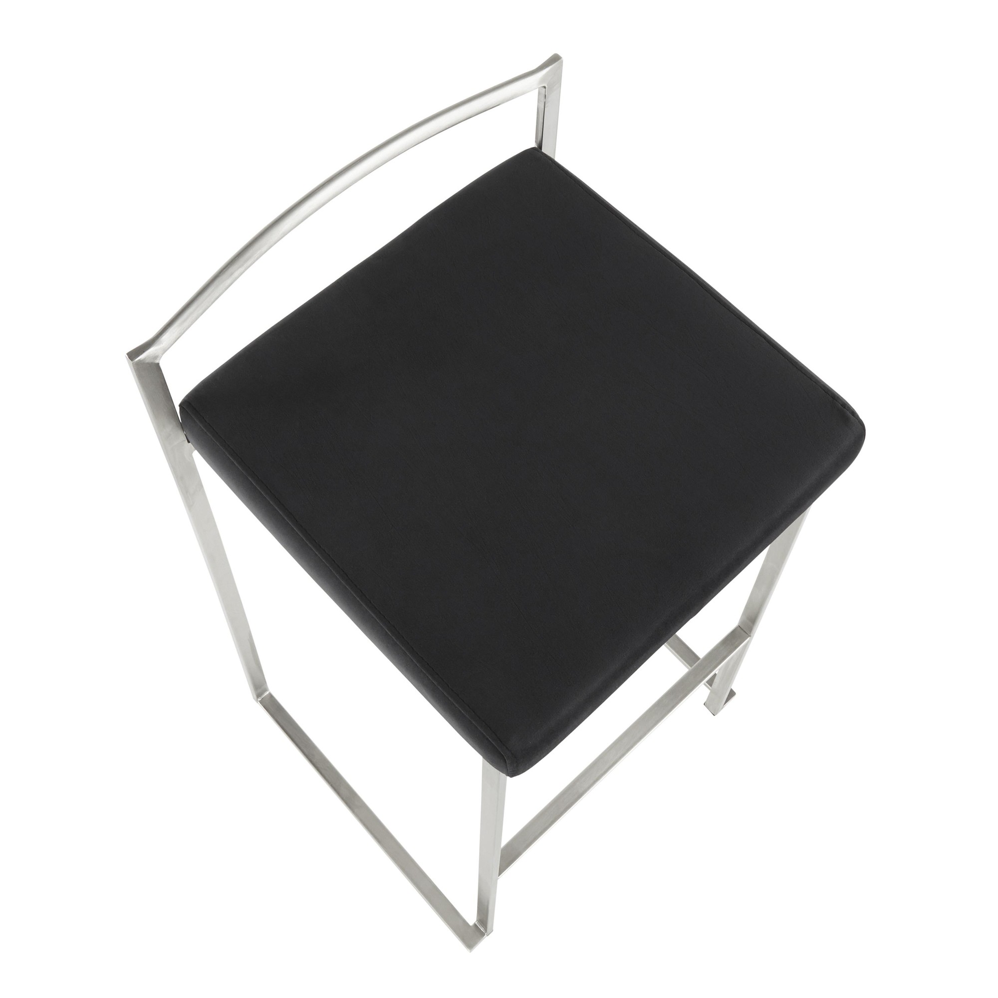 The simple elegance of the Fuji belies its astonishing comfort. Lightweight thin lines that create the simplistic frame and backrest support a thick padded seat cushion. A stackable design for easy storage makes this a great stool for entertaining. With its simple stylishness, the Fuji is sure to match any decor. Available in many color combinations, choose the look that best fits your dining space.
