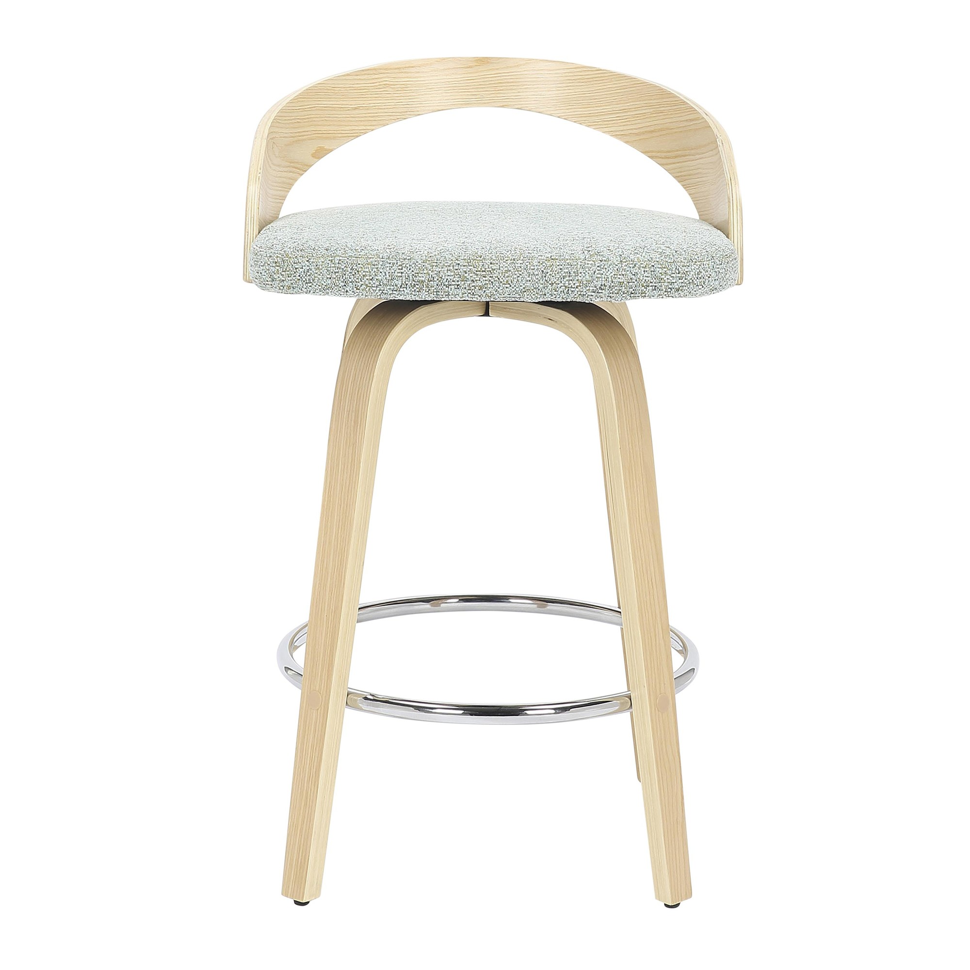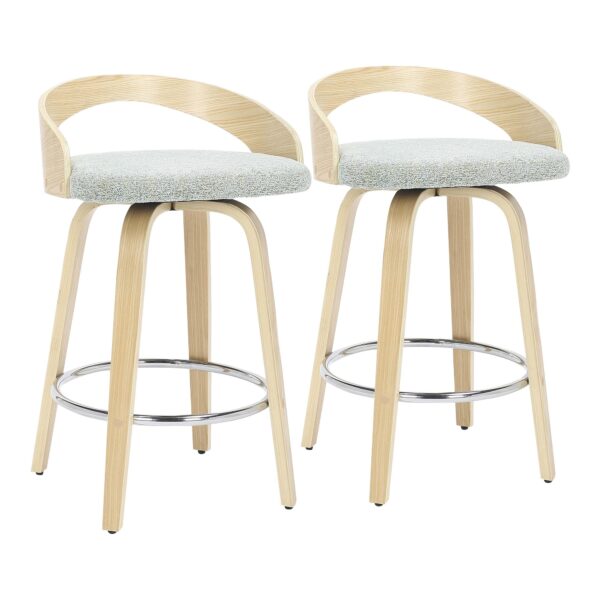 The Grotto Counter Stool’s curved low back and rounded legs radiate sophistication while modern features like a cushioned seat that swivels and a chrome footrest bring this piece into a contemporary class all of its own.