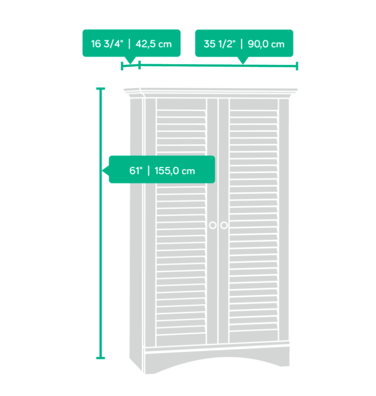 Adjustable shelves and louvered doors.