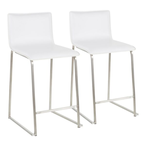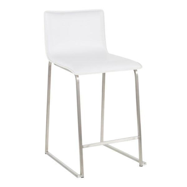 Elegant and modern, the LumiSource Mara Counter Stool has a simple design with gorgeous elements. Featuring a tufted faux leather seat, a solid wood back and graceful stainless steel curved footrest and legs. Great for a kitchen, bar or for extra seating in a break room. This stylish design will fit a variety of decor styles. Sold in sets of two, pick the color that suits your space the best!