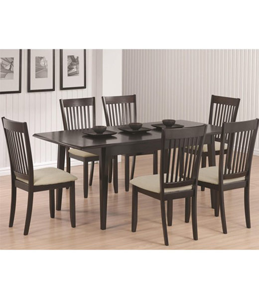 The Page collection offers cool contemporary style for semi-formal and casual dining spaces in your home. These sturdy pieces are constructed of select hardwoods and oak veneers, featuring either an Antique Oak or dark Cappuccino finish that is sure to complement your home decor. Clean lines and simple classic style make these pieces a nice choice for your home.