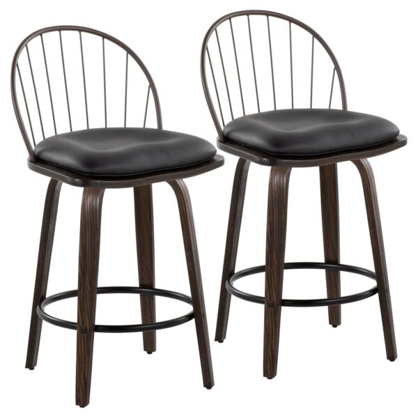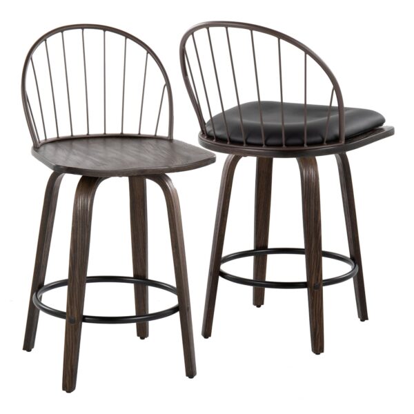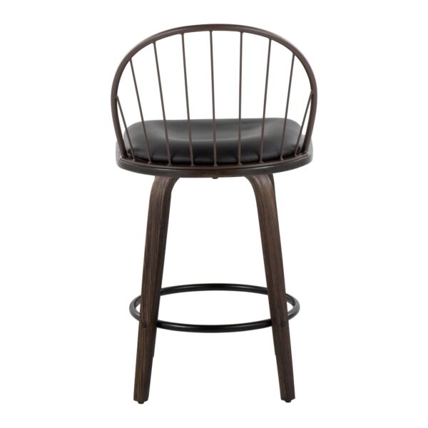 Bring farmhouse style to your kitchen area with the Riley Fixed-Height Counter Stool by LumiSource. Our updated take on a traditional spindle-back, the Riley Counter Stool is constructed with a walnut glazed wood frame, metal backrest, and features a removable cushion upholstered in faux leather. Available in a variety of color combinations, the Riley Fixed-Height Counter Stool is perfect for any island or counter table.