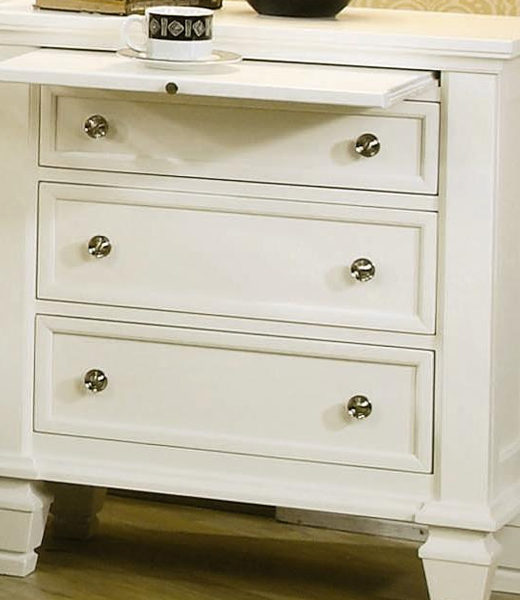 This Night Stand is crafted with tropical hardwoods and veneers in a white finish.