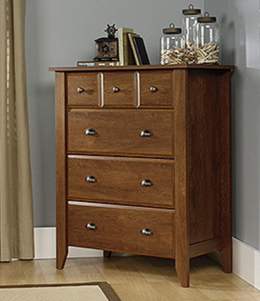 Drawers with metal runners and safety stops feature patented T-lock assembly system.