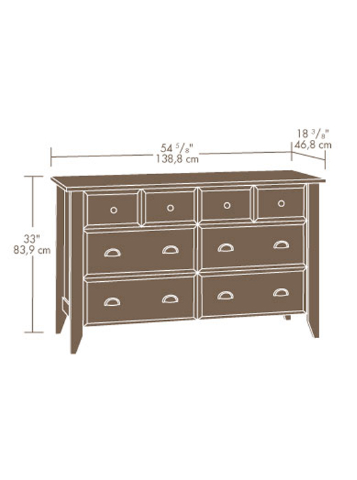 Dresser |Oiled Oak finish Drawers with metal runners and safety stops feature patented T-lock assembly system.