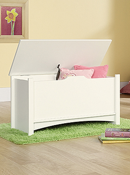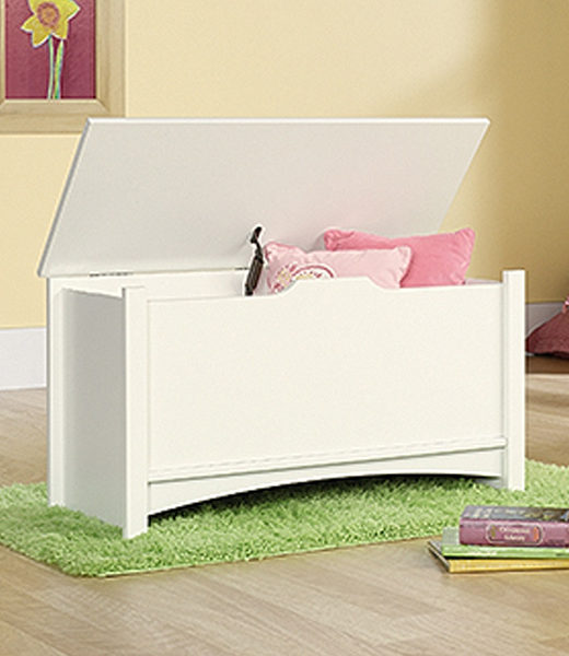 This storage chest is a versatile piece that functions as a storage chest or toy box.
