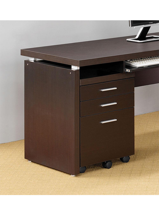A pullout keyboard drawer adds computer ready convenience to the left side of the desk. In cappuccino finish with silver accent hardware, this desk has room and adds a touch of modern style. When you are ready to get to work. Great for a larger workspace.