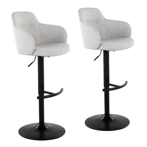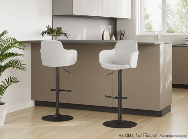 The industrial charm of the Upholstered Boyne Barstool by LumiSource combines comfort with stylish appeal. An upholstered bucket style seat is accented by a black metal pedestal base. The height adjustability and swivel seat add to functionality and comfort of this stool. Available in a variety of colors, the Boyne Barstool can be used in the kitchen, dining room, bar or breakroom.