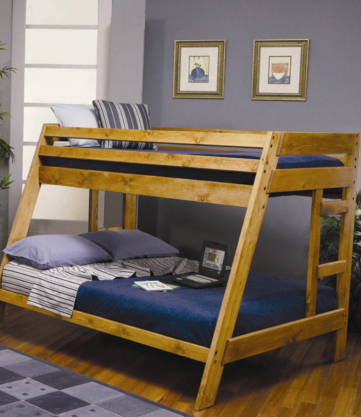 Whether you have children who share a room or you are looking for a fun, youthful style, this twin over full bunk bed will make a great addition to your home. The solid pine construction offers durability, while full-length guard rails provide safety and a built-in ladder allows for easy access to the top twin bunk. The relaxed features will blend perfectly with any casual decor and will create a refreshing look in your children’s bedroom.