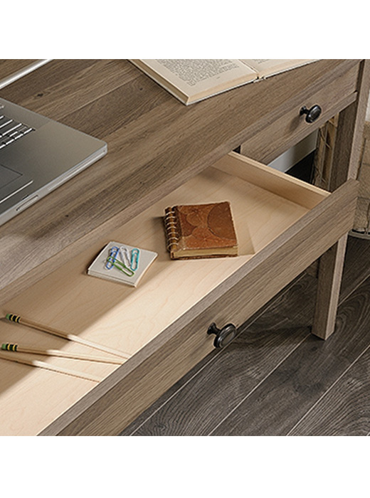 Writing desk ideal for a home office. If you need a computer surface for a room with more limited space, this small desk is an ideal option. A good amount of surface space with slim drawers underneath.